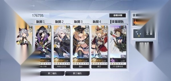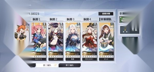 先声明一下,我是零氪金玩家,所有资源全靠游戏内白嫖。我的第一编队用的是1111的配置,没带歼击车,主要是我偏爱暴力输出流,想把队伍的伤害拉到最高;第二编队则是211的阵容,为啥不用2+2组合呢?一方面是我想把SSR角色都放进去,另一方面现在等级才25级,第一编队完全够用,第二编队还没真正派上用场。如果有兄弟伙有好的搭配思路,一定要跟我交流交流!