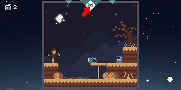 把猫放在下方平台的右侧,紧贴着边缘,接着让猫和方块交换位置(这样方块就会被放到图里显示的地方),之后从上方平台跳下来落在方块上。这样就能把方块推到左边当作垫脚石去拿罐头了。