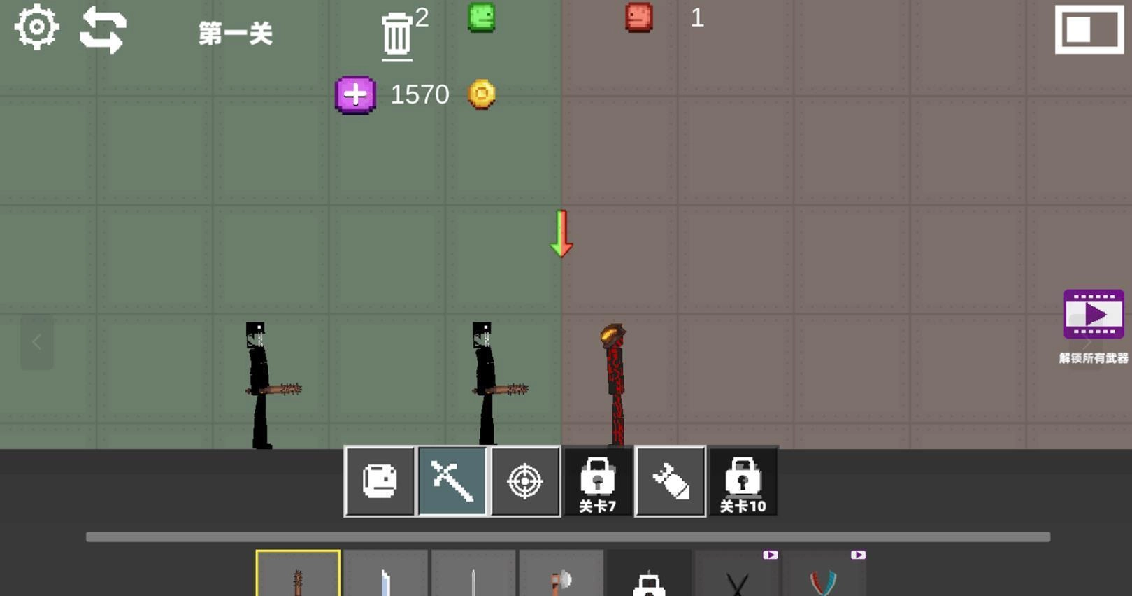 2、你能够自由创造世间万物,构建专属于自己的独特场景,收集威力强大的甜瓜武器,按照自己的想法,发起肆意疯狂的攻击。