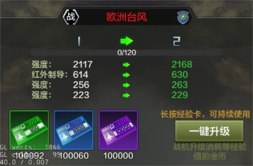 战机升级是必不可少的环节,像战机改造这类功能也需要依靠战机等级才能进一步解锁提升。作为战机培养体系里的基础功能,它和很多后续玩法都有关联,但升级本身的性价比其实是最低的——属性提升幅度不大,却要消耗大量资源。所以我的建议是,等后续功能遇到瓶颈、不得不提升等级时,再去升级战机等级就好。