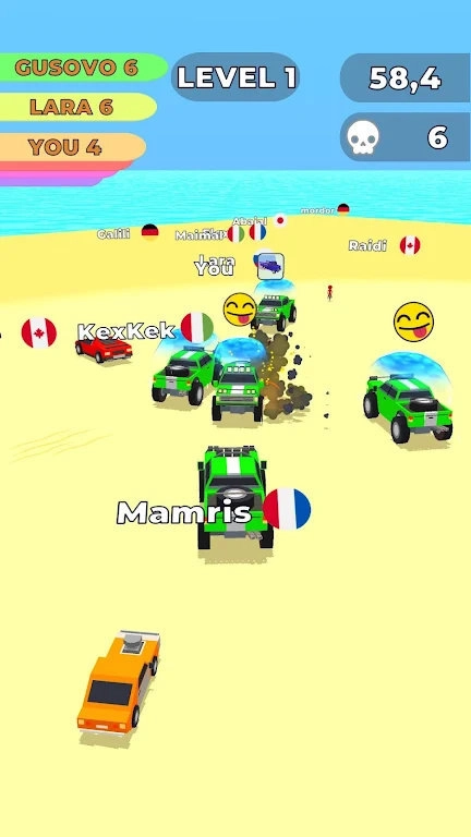 2.和敌人一较高下,在竞技场上化身最酷炫的车手,畅快闯关,收获更多欢乐。