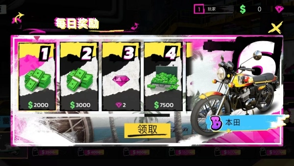 登录游戏后,你可以在首页完成签到任务,获取钱币,这些钱币能用来解锁更多种类的摩托车。