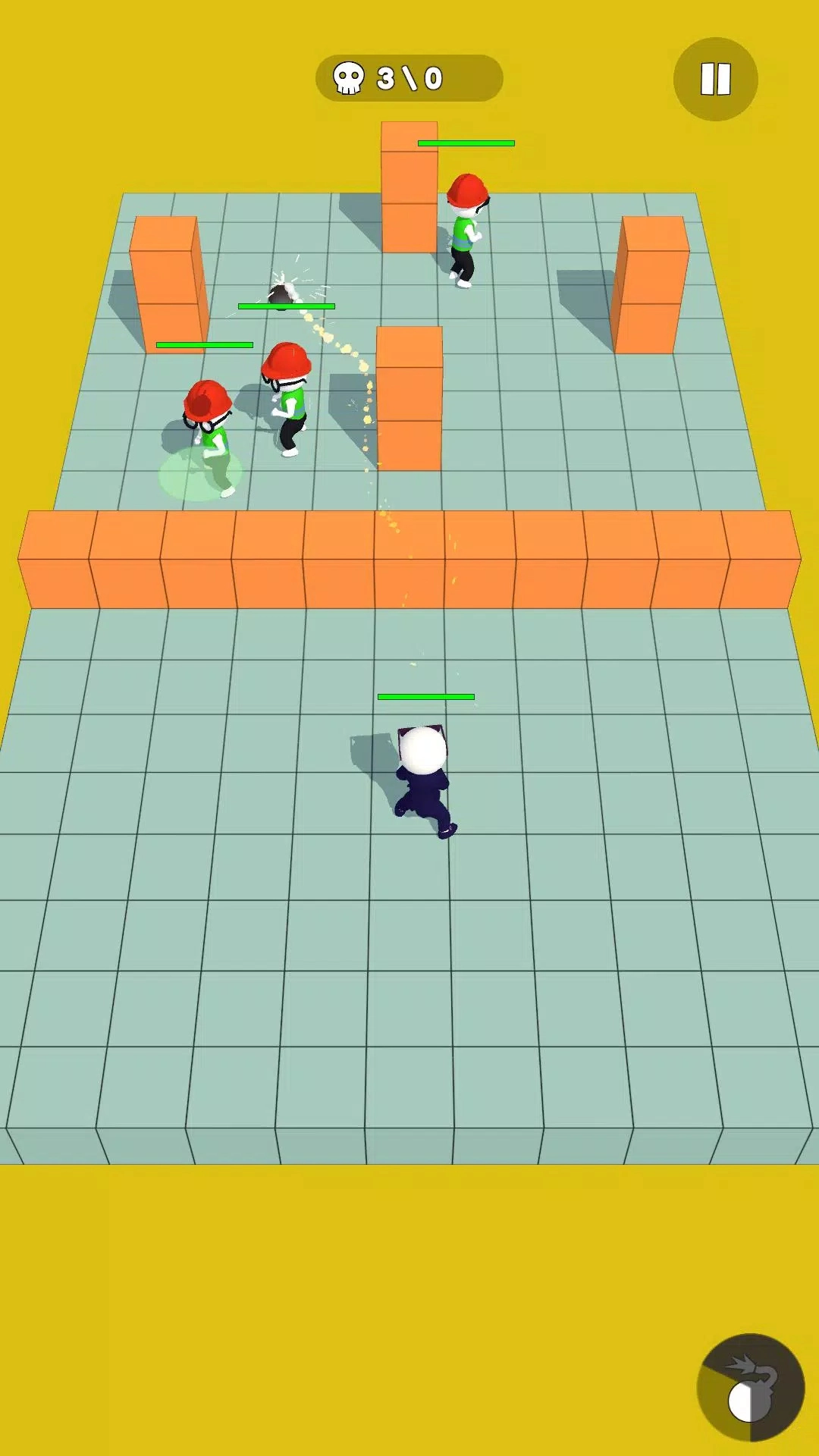 2、通过随意滑动屏幕来操控炸药包狂人移动,需要注意的是,红圈所覆盖的区域就是你的投掷范围。