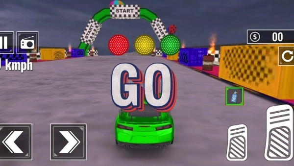 登录游戏后,通过点击左右键来操控汽车的行驶方向,再点击右下方的油门按钮,就能启动车辆开始驾驶了。