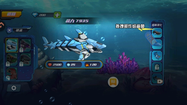 游戏里准备了各式各样的装饰和皮肤,保证每条小鱼都能有与众不同的外形。你可以通过收集饰品、解锁限定外观,自由塑造专属于自己的战鱼模样,在辽阔的海洋里成为最受关注的存在。