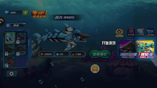 游戏设有排位赛与海底深渊两种玩法模式,我们决定选择排位赛来开启游戏。
