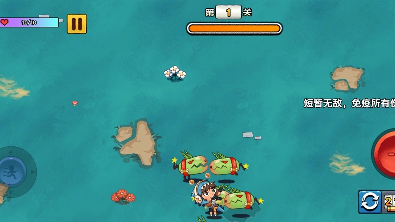 1.左边的轮盘控制角色进行上下左右移动,右边红色按钮点击即可开枪。