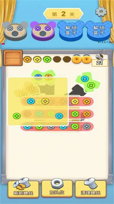 3、随着游戏进程,螺丝和孔洞的数量增多,增加了游戏难度。