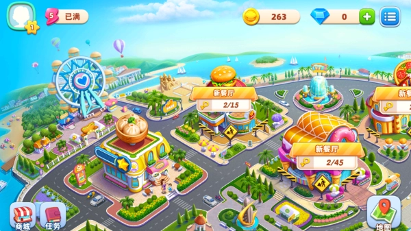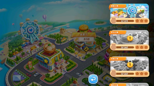 在地图界面里,点击已解锁的餐厅即可开启关卡挑战,其余餐厅则需收集关卡钥匙来解锁。