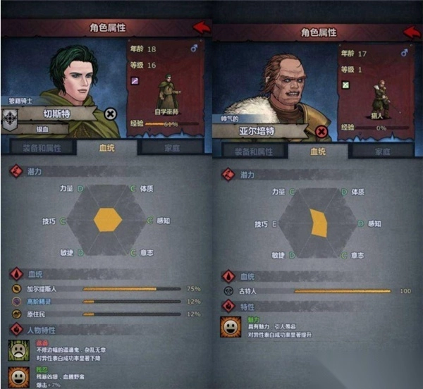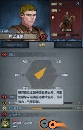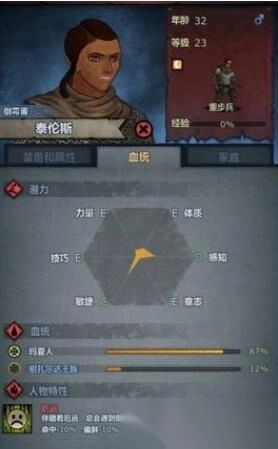 士兵的属性(如力量、技巧、敏捷等)与其血统类型相关,拥有高级血统的角色在这些属性上会有更出色的表现。