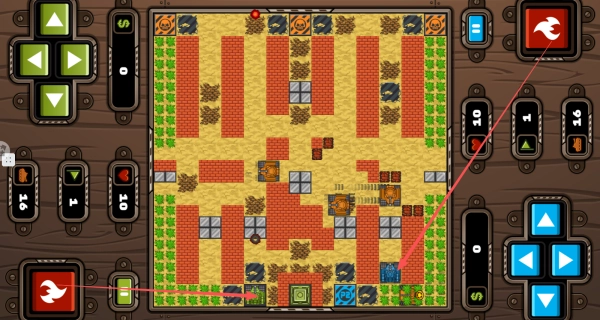 我们能够操控两辆坦克展开射击,左边和右边各负责控制一辆坦克进行射击。