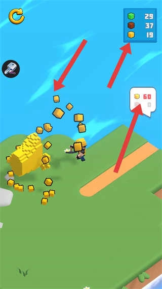 找到金色方块造型后,将其破坏,可获得金色方块等资源,破坏的过程也丰富了资源储备。