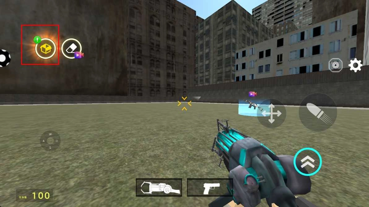 看到左上角那个带有感叹号的方块图标了吗?点击它就能打开功能选择界面,查看助力射击的相关内容。