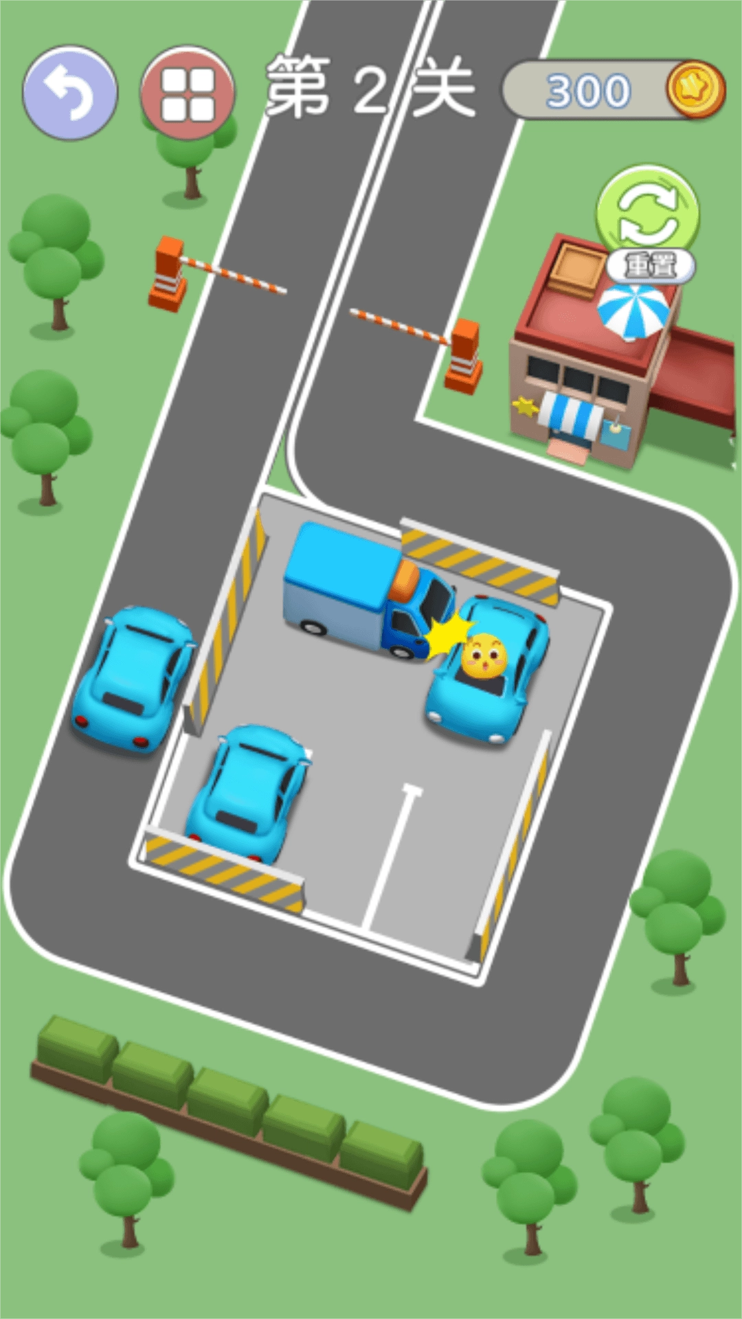 游戏主要玩法为点击屏幕控制汽车驶离的顺序