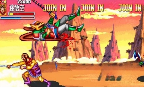 无POW状态下的招式:↓B 大斩能造成远距离伤害,→→A 是威力强劲的踢腿,妖怪被击倒后按A键可进行拍击。
