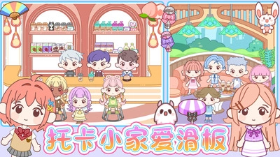 《托卡小家爱滑板》是一款画风卡通、温馨可爱的休闲模拟游戏。在这里,玩家能自由参与装扮挑战,众多场景等待大家逐一探索。你可以依据自己的喜好或需求,为角色设计独特的发型与妆容——每个角色都十分可爱,快来打造个性满满的专属形象吧!