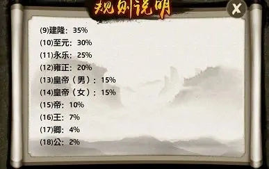 游戏内的称号包含以下类别:公、卿、王、帝、皇帝、实名帝、青史帝