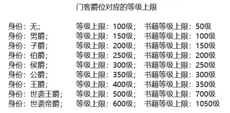 ②关于各个身份爵位的等级上限以及书籍等级上限的详细说明如下: