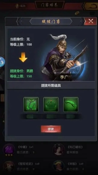 大人能够使用银两来提高门客的等级,门客等级提升后,会依据其当前的资质提升对应的属性值。