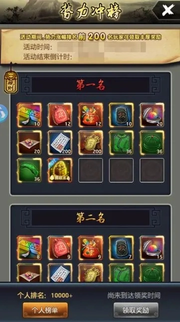 游戏里的称号大多得靠冲榜获取,像新区刚开的时候,通常会有势力冲榜、关卡冲榜和银两消耗冲榜这类活动,对应的奖励分别是摄政王、平西王和富国公的称号呢~