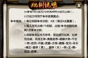 在官府府邸的争夺较量里,首先会对双方的称号进行比较,要是称号相同,就接着比拼彼此的官品与政绩。正因如此,拥有称号的大人在这类争夺中往往更占上风,能够抢占到更优质的据点,进而获取更多的行动力!