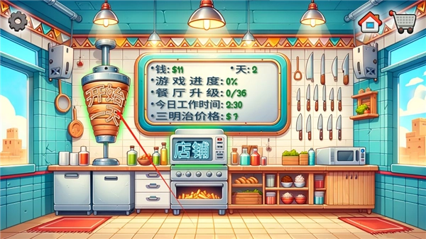 画面场景的体验设计力求贴近真实餐厅的氛围,让你仿佛置身于游戏里沙威玛大厨的日常之中。