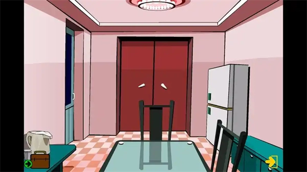 进入电子门后,再次输入六位密码。连续向右转动两次,接着走上楼梯,在楼梯拐角的角落里,找到一把粉红色的钥匙。随后下楼返回一楼,用这把粉红色钥匙打开那扇深红色的门。