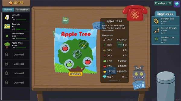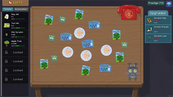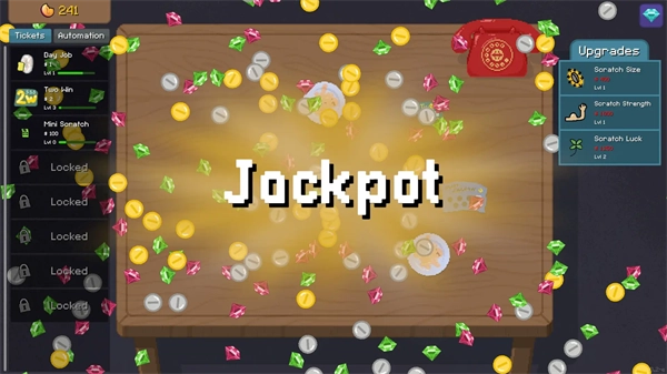 幸运刮刮乐是一款能带来满满成就感的刮刮卡积累类游戏。多买些刮刮乐,再配备一台自动刮刮器,让它代劳所有繁琐操作,助你赢取丰厚大奖!你会选择放手一搏,冲击高额奖金,还是倾向于步步为营、稳扎稳打呢?