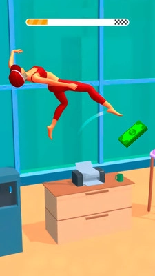 像个跳跃大师般进行翻滚,穿越各个房间!