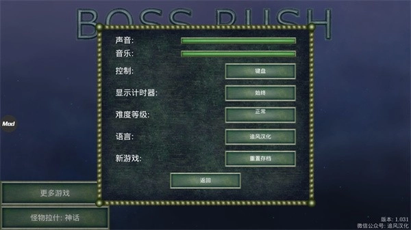 游戏开始时会出现一个选项,通过它你能够对声音、语言、音乐等进行调整。