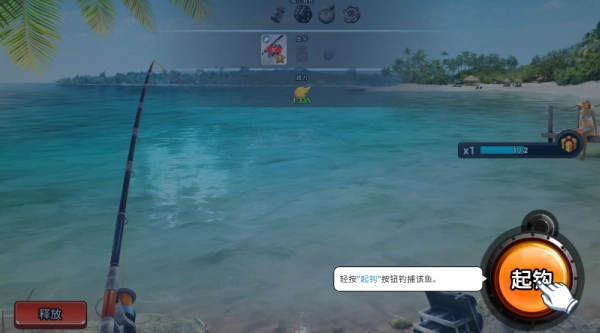点击游戏屏幕右下角的抛竿按钮开始游玩,之后再点击起钩。