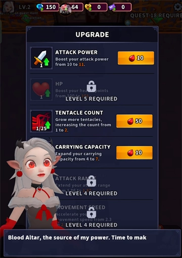这座沉寂许久的城堡藏着数不尽的奇珍异宝,贪婪的猎人闻风而来,接连闯入侵扰。他们的喧闹惊醒了沉睡的吸血鬼女伯爵——城堡的宁静被打破让她怒火中烧,沉睡太久的身体也急需新鲜血液恢复力量。现在,化身这位女伯爵,给那些不知好歹的闯入者一点深刻教训吧!