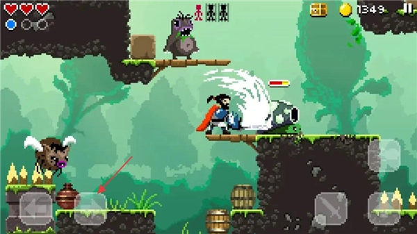 当看到箭头指示的罐子之类的物品时,攻击并打碎它们,或许能得到金币之类的奖励。