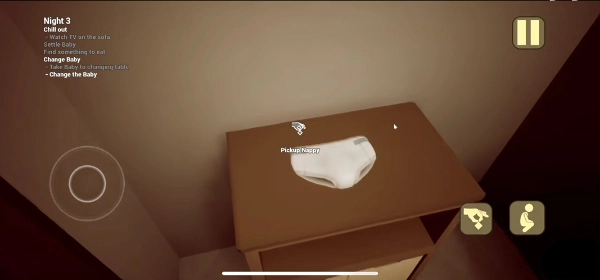 接下来要进行换尿布环节,这可是最关键的时刻,胆子小的得提前做好心理准备——你刚拿起尿布准备给他换,他就会突然化身小恶魔把你吓一跳,紧接着还会召唤玩具发起攻击。这时候你得赶紧跑回自己房间,拿出那个金色奶嘴给他戴上,他立马就会乖乖倒下。之后你要把他抱回婴儿房,给他读绘本,这样第一个故事的结局就达成啦。