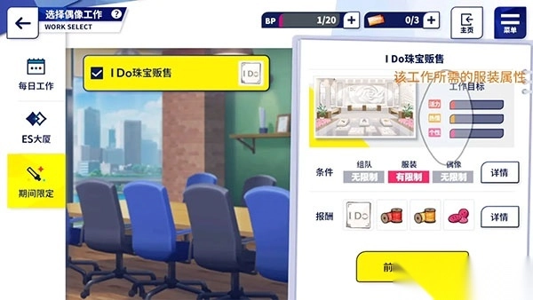 需要注意的是,ido工作掉落的材料仅限粉色系,而es工作1掉落的材料则没有限制。