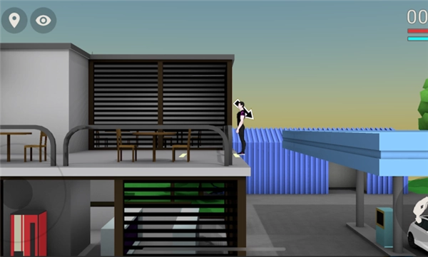 分阶段动作操控:起跳、转身、落地这一系列动作要靠点击屏幕来协调实现,和《QWOP》那种讲究节奏感的设计很像。玩家得精准把控初始速度、旋转角度以及平衡点,不然就会触发失败后的夸张物理效果,比如角色四肢扭曲着摔落在地。