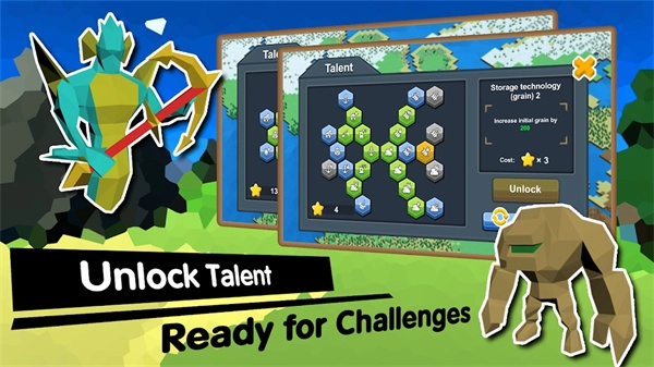 不同种族都具备专属的种族技能,有的种族拥有坚固的护盾,有的则配备锋利的长矛!每个种族还设有独特的天赋系统,每个种族都有25种天赋技能可供自主定制,玩家可以随着游戏进程获取天赋点数,以此来强化自己的部队。