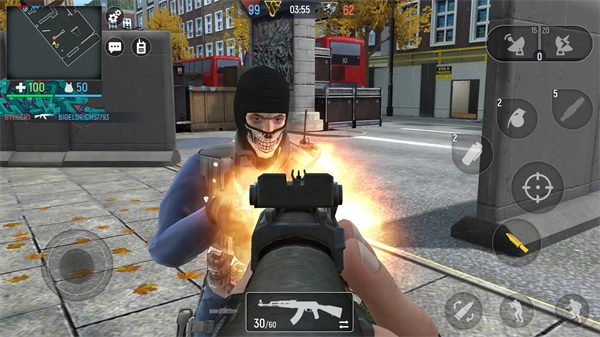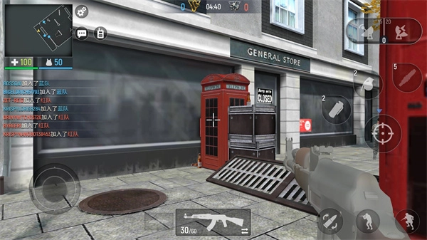 左侧负责遥感操控,右侧进行射击操作,瞄准、换弹、投掷手雷、切换武器等一系列功能与操作设计得中规中矩,契合绝大多数玩家的使用习惯。在一局设有时间限制的对局里,玩家需要尽可能多地击杀敌对势力来获取积分,角色死亡后能够从基地复活,还可以和队友配合展开协同作战。
