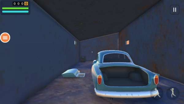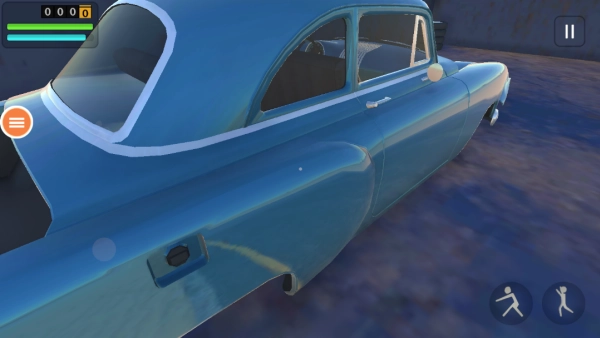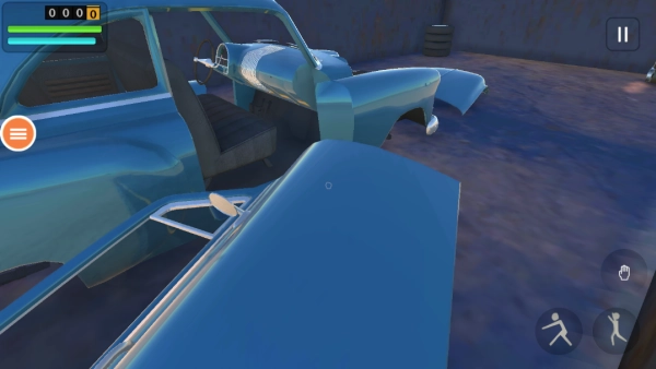 通过左侧的虚拟摇杆操控移动,去收集地面上散落的汽车零部件。