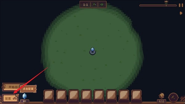 进入对局后,点击下方的配置选项,系统会让你挑选装备与防御装置。