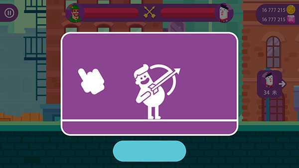 这款游戏的画面表现尚可,操作上沿用了经典的弹射机制,和《愤怒的小鸟》有些相似。玩家只需按住屏幕上主角周围的区域,向后拖动手指,就能看到反弹能量值与角度值的显示;松开手指时,手中的武器便会直接发射出去。游戏的操作十分简单,并且还贴心地标注了能量和角度,这有助于玩家更精准地控制射击的准确度。