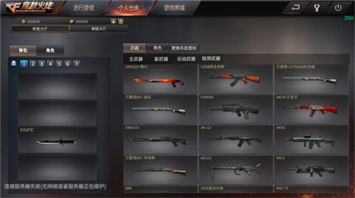 点击个人仓库,可以看到各种武器装备都可以使用。