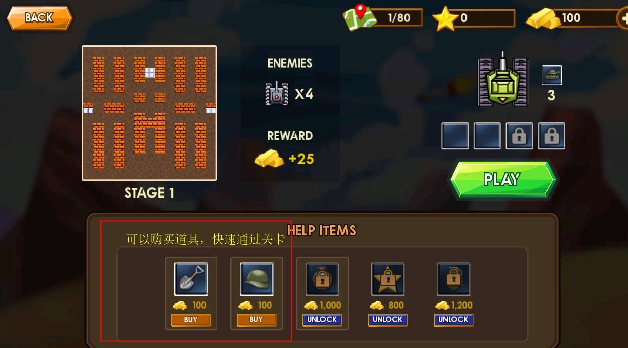 你可以用收集到的金砖解锁强力道具,这样能帮你更高效地突破关卡;等准备好之后,再点一下Play就能开始战斗啦。