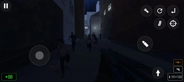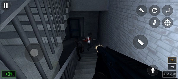 游戏的操作十分简易,左侧负责调控人物的移动方向,右侧则掌管射击、换弹、瞄准之类的操作。