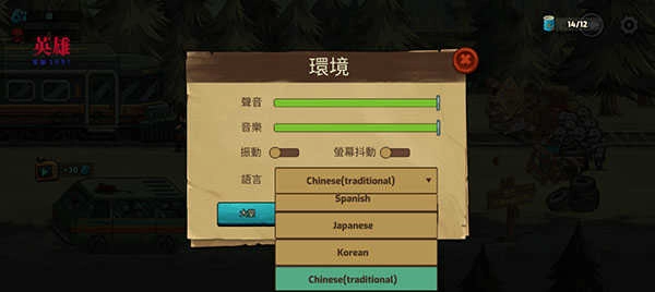 首先我们把语言切换成中文,等进入游戏并完成第一关的挑战后,再点击右上角的齿轮图标。
