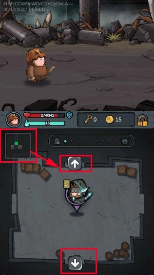 游戏下方左上角的位置显示着地图,通过其中的方向键按钮能够切换不同的地图。