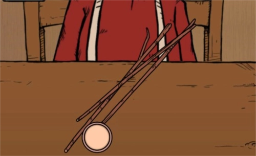 制作完钓竿后,就可以去湖边钓鱼了。在客厅里点击窗外,然后点击左下角的右箭头→。