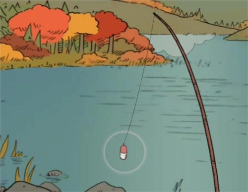 当浮标四周浮现出光圈时,意味着有物体咬钩了,此时点击浮标就能将其钓起,钓上来的或许是鱼,也或许是破靴子。