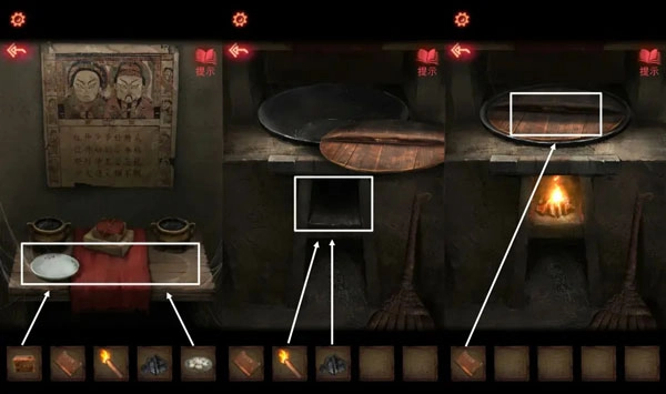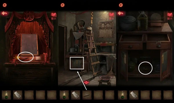 把两张【半张照片】拼合好嵌入相框,触发机关后,去神龛的木板那里拿到【鬼头刀】,用它劈开挡路的木门,就能顺利逃出房间了。
