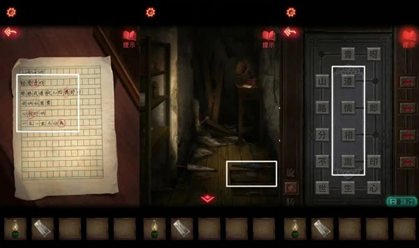 按照歌词纸上圈出的文字组合成词语,就能解开机关,打开通往地下室的入口。